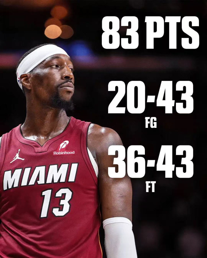 即便是奇才如此,阿德巴约还是拿到了83分,还是破纪录了。